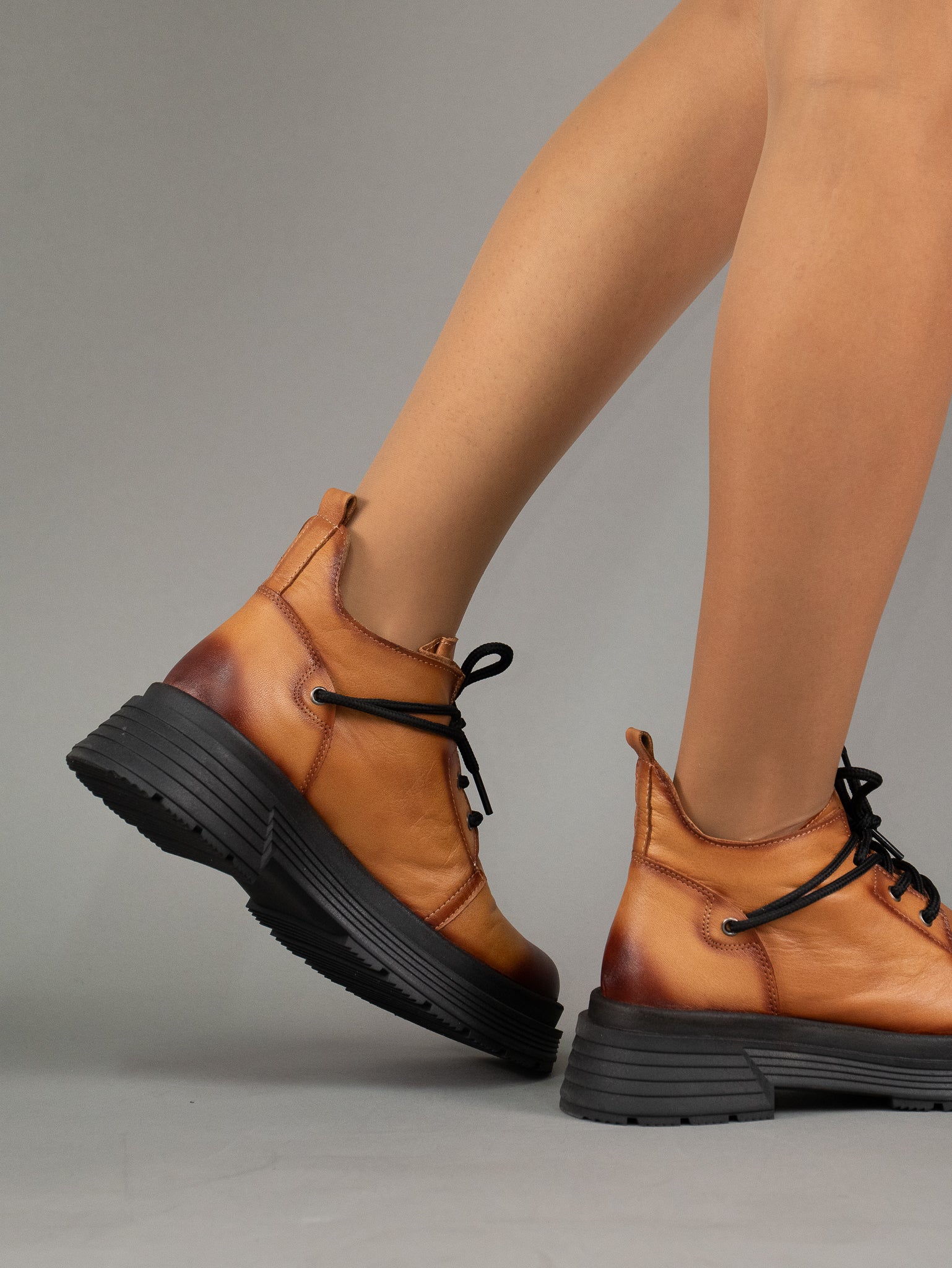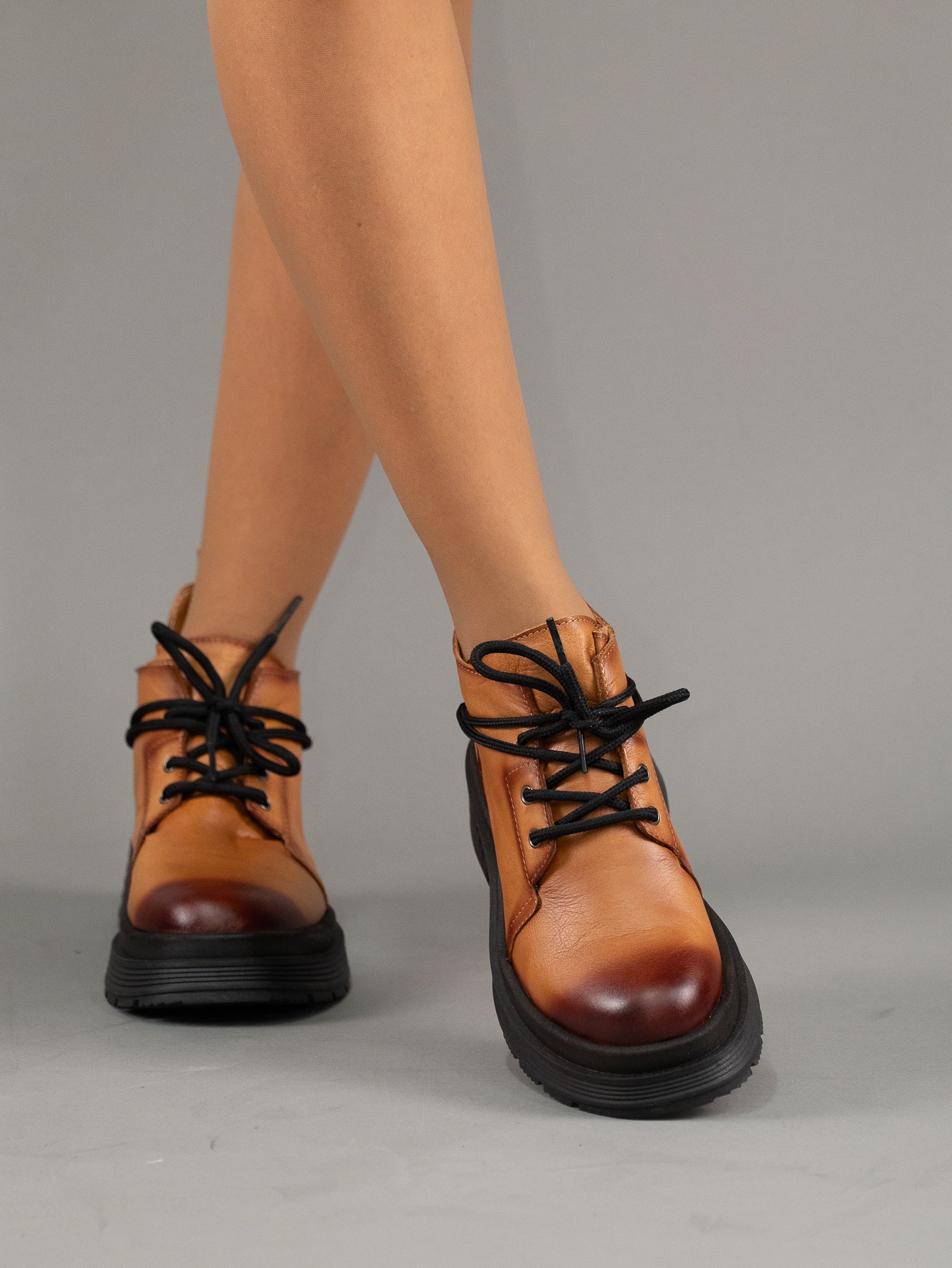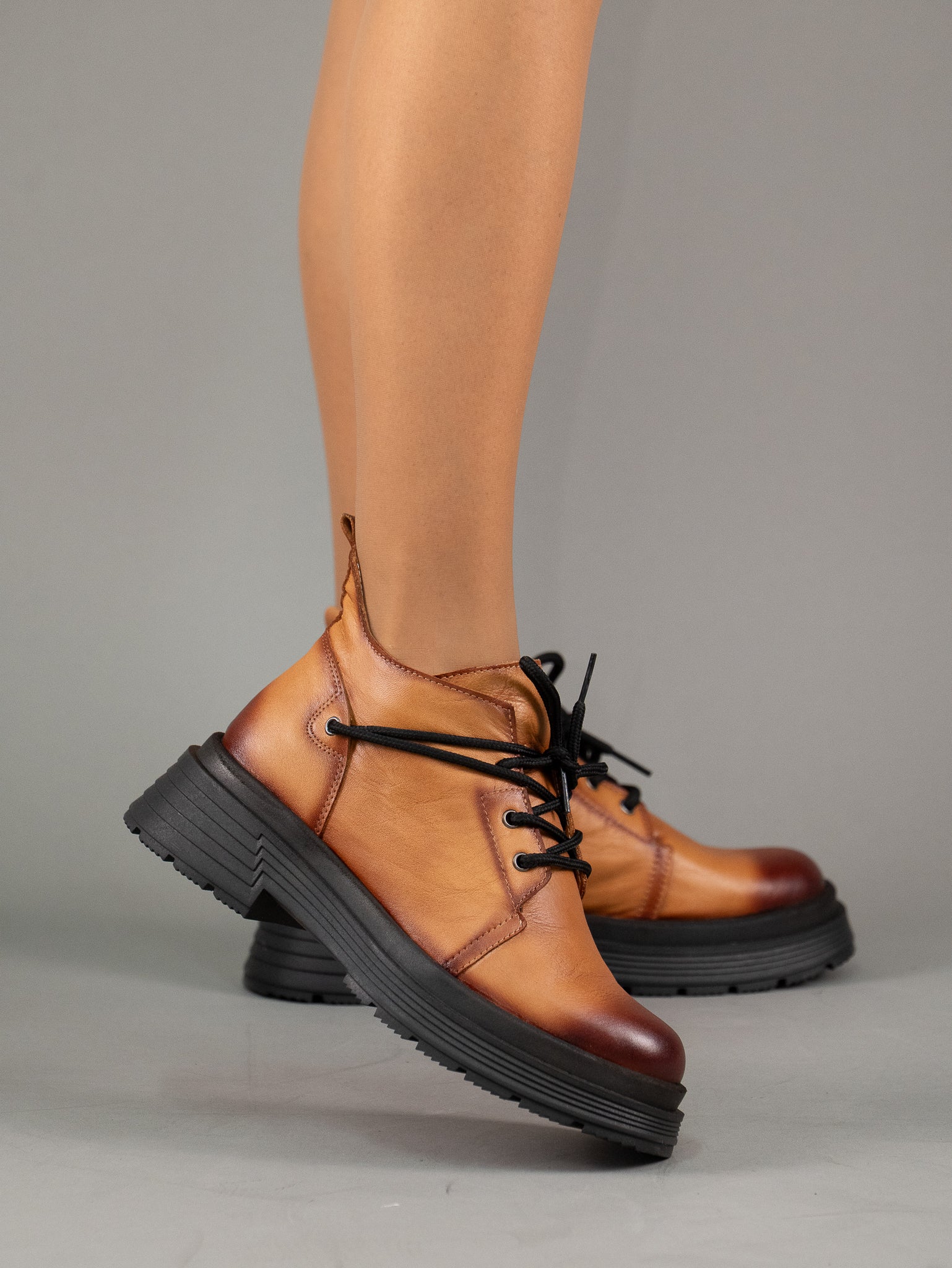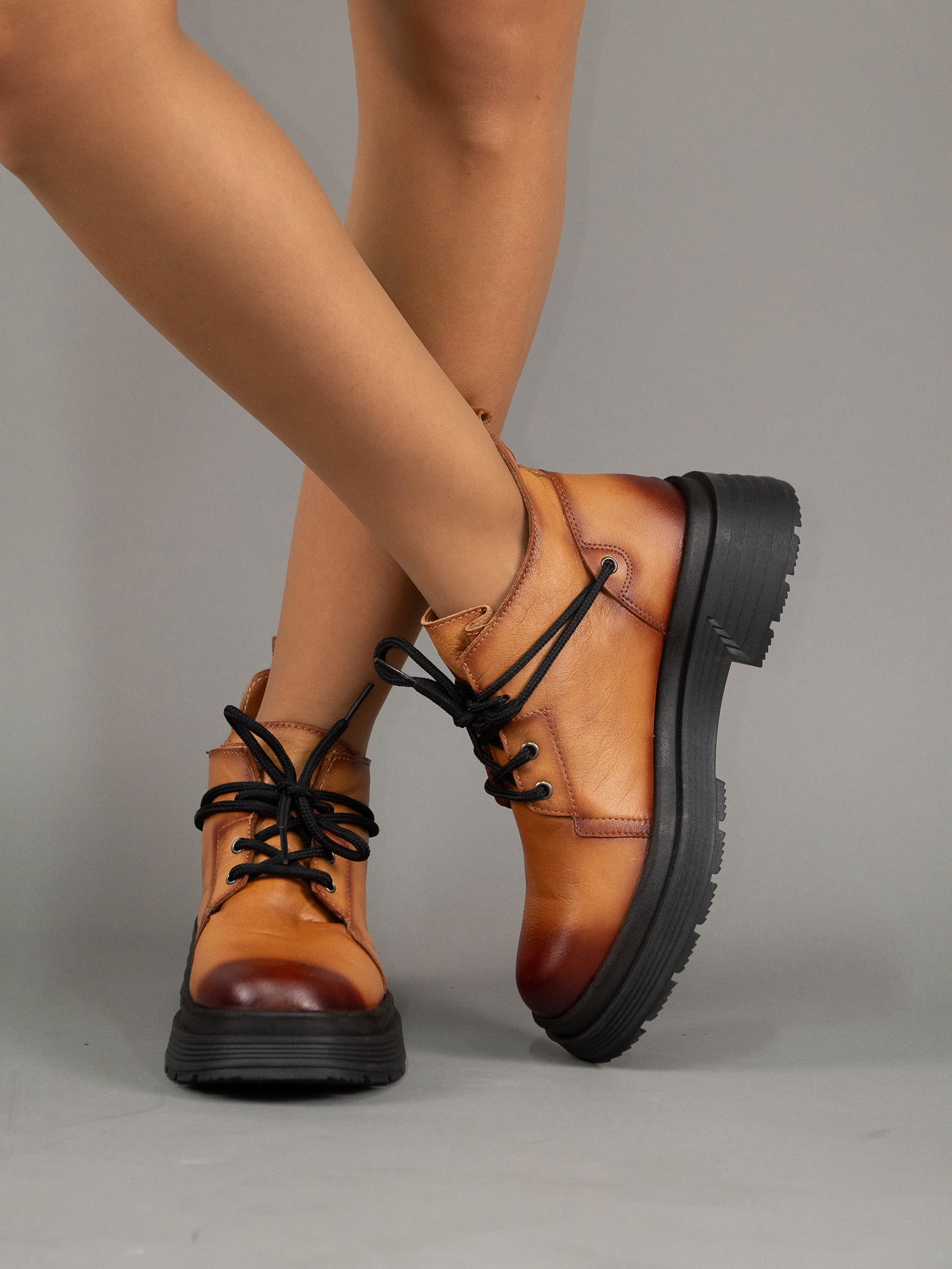 Ghete din piele naturala cu siret si fata si decor pe laterala ideale pentru un look casual si urban, oferind atat confort cat si durabilitate.